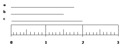Look at line a. It extends past the 1.8 mark on the scale. By my estimate it goes to 1.84 so that is what I would write down. You might see it the same way or estimate it at 1.83 or 1.85. Either of those would be a reasonable measurement.