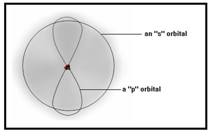 These orbitals look like they each contain a cloud of many electrons. In fact, each one can contain at most only two electrons. We picture them as a “cloud,” however, because this best reflects the fact that we can’t specify the path that the electrons follow within the orbital. In fact, it appears that they follow no path at all. A better analogy for electrons is to imagine a vibrating string. The vibrations would make the string seem diffuse and its location hard to determine exactly. In this analogy, however, the electrons would be the vibrations, not the string. |