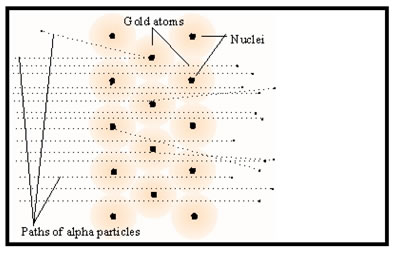 To test J.J. Thomson’s plum pudding model, Rutherford directed a beam of alpha particles at a thin leaf of gold foil. If Thomson’s model were correct, the alpha particles should pass right through the foil. The much lighter protons and electrons would not be heavy enough to deflect the more massive and fast moving alpha particles.