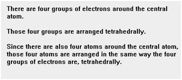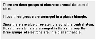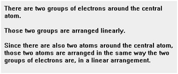 Remember to determine first the arrangement of groups of electrons – either linear (2 groups), trigonal planar (3 groups), or tetrahedral (4 groups).
