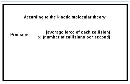 The KMT assumes that the pressure exerted by a gas on the walls of its container is due to collisions between the walls and the particles of gas. The pressure is therefore determined by how many collisions occur, and by how hard they are: the more collisions there are and the harder the collisions are, the higher the pressure.
