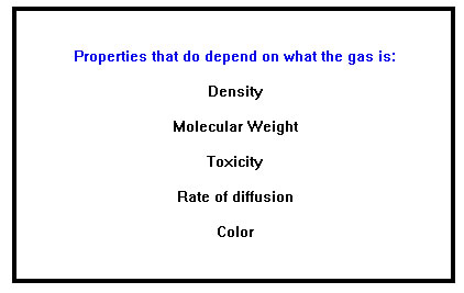 For now, we will confine ourselves to the properties of gases that do not depend on what the gas is. It will be important, however, for you to recognize which properties are which. P, V, n, and T do not depend on the nature of the gas. All others do.