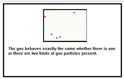 Because ideal gases are not affected by the forces of attraction between particles, it does not matter what those particles are. A mixture of several gases behaves exactly the same as if it consisted of only a single kind of gas. This is consistent with the idea that gases are a collection of particles flying around at high speed crashing into each other and the walls of their container. Since all they do is bounce off of things, it does not matter what their internal structure is.