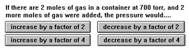 Imagine a container of fixed volume and insulated so that the temperature inside stays constant. Imagine it contains 2 moles of gas and the pressure is 700 torr. What do you think would happen to the pressure if we added another 2 moles of gas?