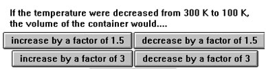 Now imagine our container with its original one mole of gas and suppose that we decrease the temperature from 300 to 100 K. Now what happens to the volume of the container?