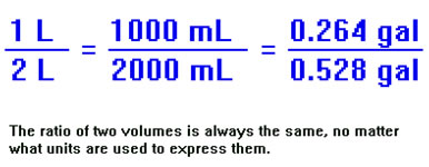 Suppose we increase, say, a volume from 1 liter to 2 liters, doubling the value. In milliliters, the volume went up from 1000 mL to 2000 mL, it doubled. In gallons, the volume went from 0.264 gal to 0.528 gal – it doubled. No matter what units we use, the volume doubles. This is true because converting from one set of volume units to another always involves multiplying by some conversion factor. If you multiply a doubled volume by a conversion factor, you get a doubled answer. This is true of pressure as well. |