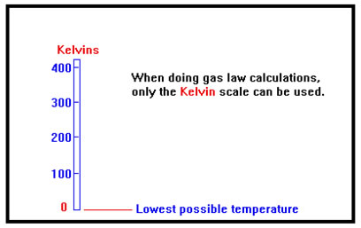 The website "Physics 2000" has a great interactive animation about gas particles and Kelvin temperatures. I recommend following the link and taking a peek! |