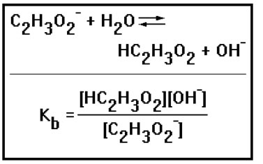 Just as equilibrium constants measure the strength of acids, they also measure the strength of bases. In this reaction, the acetate ion accepts a proton from water, thus acting as a base.