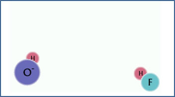 Since the H+ ion is positively charged, a negative ion or a neutral molecule with a strongly electronegative atom is required for this to happen. In this example, the F- ion has a strong attraction for H+ ions, leaving behind an excess of free OH- ions in the solution.