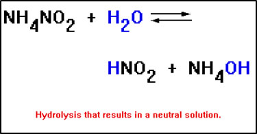 It’s also possible that what causes the hydrolysis reaction to occur will bond to both the H+ ion and the OH- ions that form. In this case, the solution will be neutral, since neither H+ nor OH- ions are left in solution.