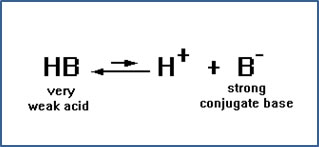 If the ion B- has a strong attraction for the proton, then the HB molecule will have a very weak tendency to give the proton up. In other words, HB will be a very weak acid.