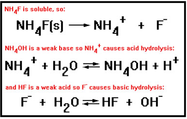 After the hydrolysis reaction, the solution contains free hydroxide ion and HF molecules. The solution is basic. |