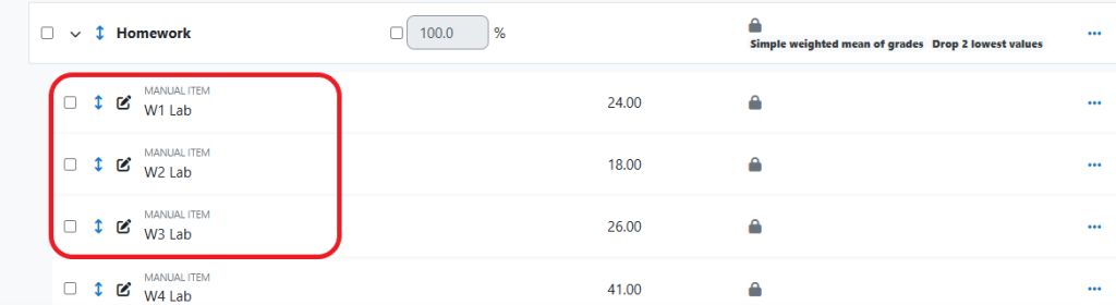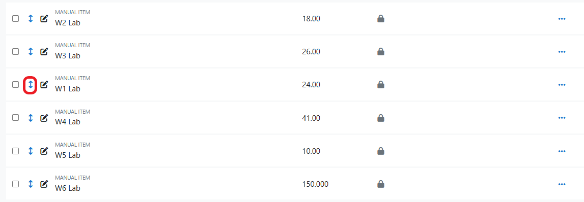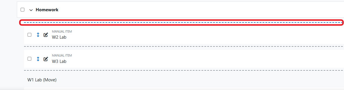 Move items into an expected order (Assignment #1, Assignment #2, etc.) or move a single item elsewhere in the gradebook.