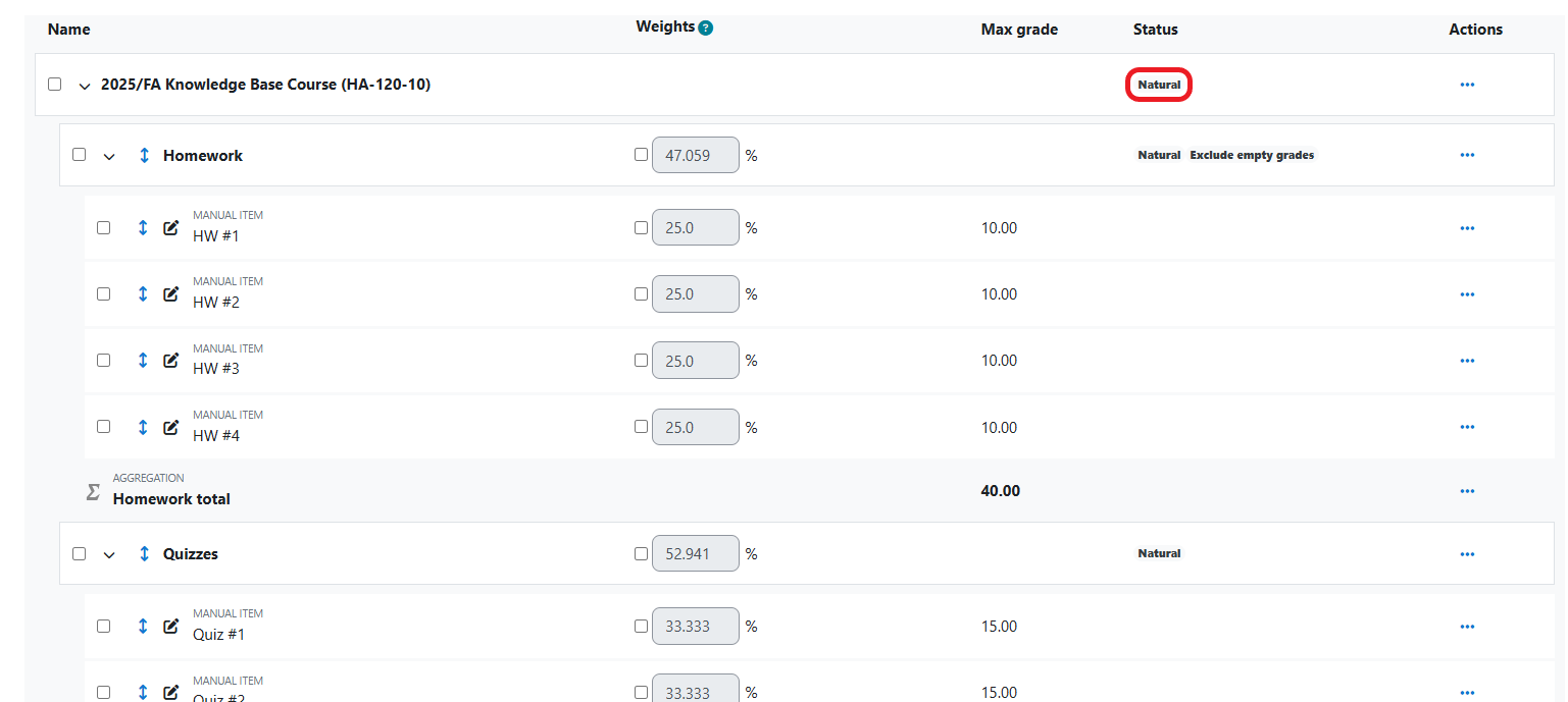 You may find that student grades appear lower than expected if grade items that are hidden or have not been completed are being used to calculate the course grade. If you are finding this to be the case you can follow these steps to fix this issue.